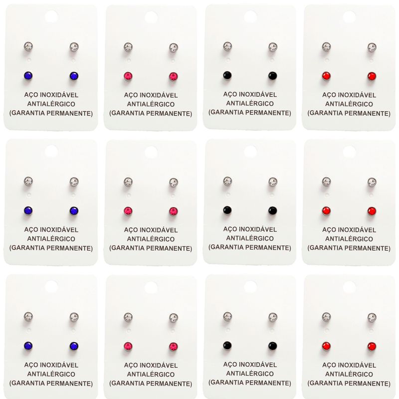 PACOTE COM 12 CARTELAS DE BRINCO AÇO INOX