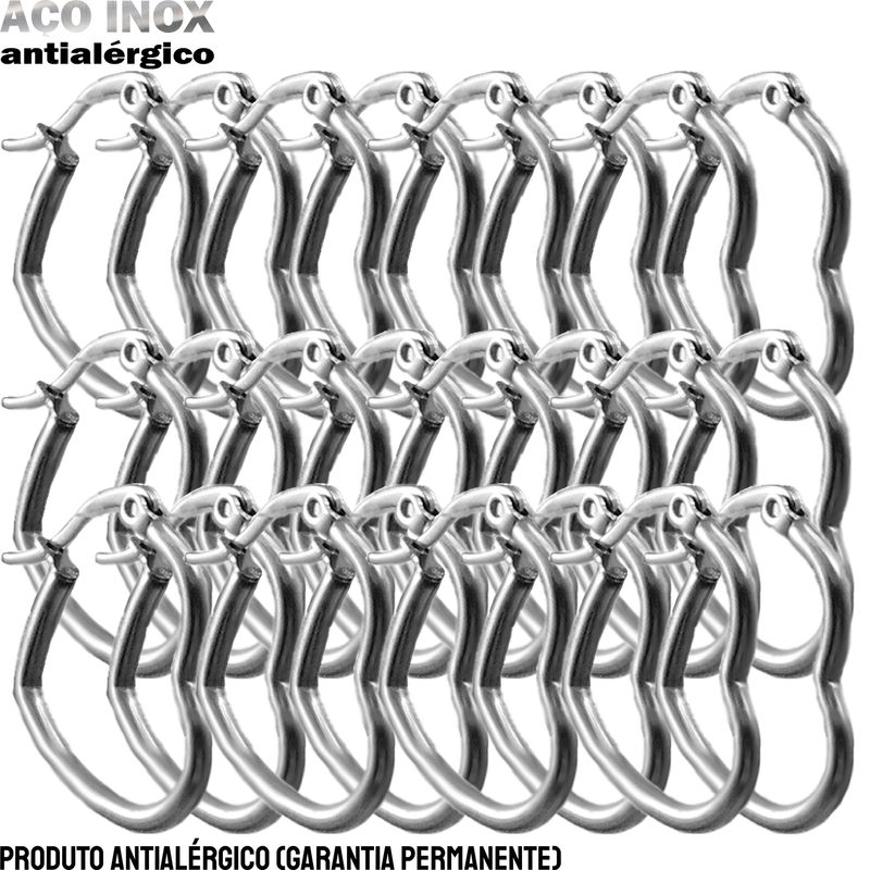 JOIA EM AÇO INOXIDÁVEL - PACOTE COM 12 PARES DE ARGOLAS LISAS MODELO CORAÇÃO - TAMANHO G - 5 CM