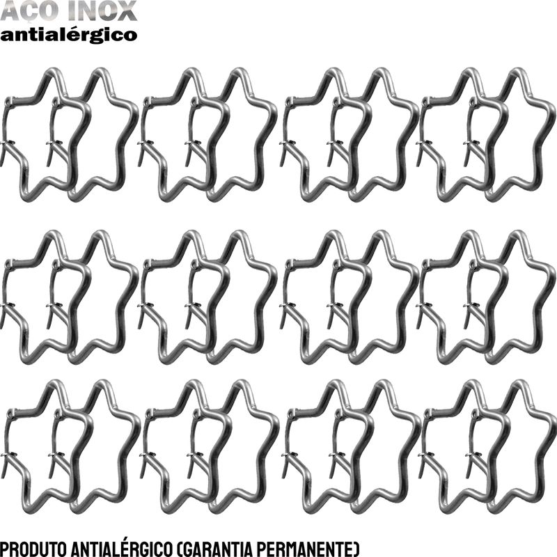 JOIA EM AÇO INOXIDÁVEL - PACOTE COM 12 PARES DE ARGOLAS LISAS MODELO ESTRELA - TAMANHO PP - 3 CM
