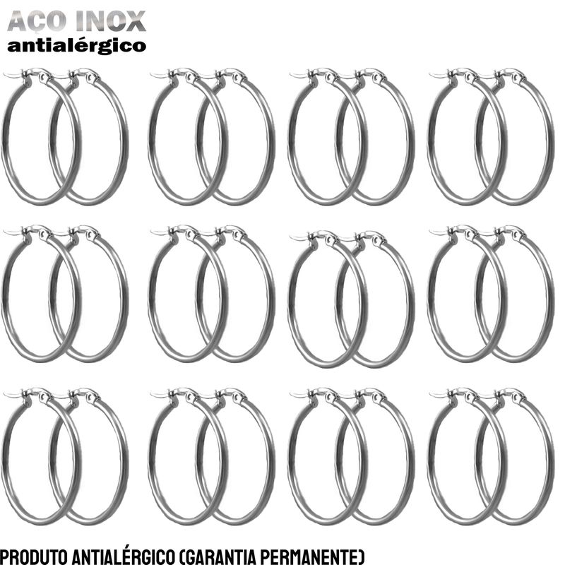 JOIA EM AÇO INOXIDÁVEL - PACOTE COM 12 PARES DE ARGOLAS LISAS MODELO TRADICIONAL - M - 5 CM